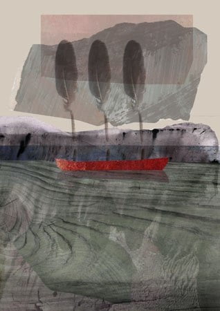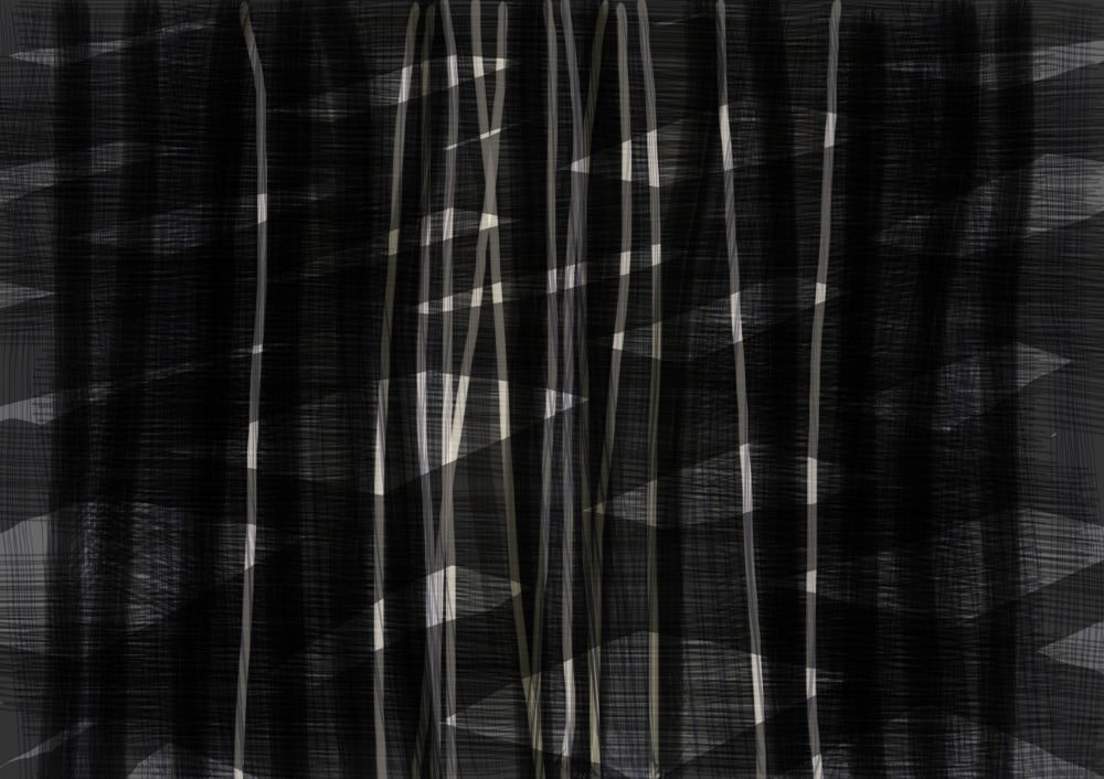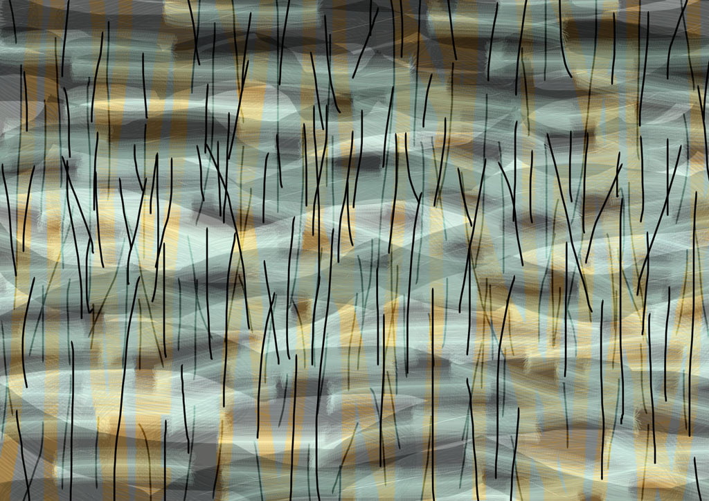 In de jaren ‘90 heb ik de computer en scanner ontdekt als gereedschap. Ingescande voorwerpen combineerde ik op het scherm met vormen en kleuren in elkaar overlappende lagen tot een beeld ontstaat dat associaties oproept met een landschap. Als ingrediënten gebruikte ik materiaal dat ‘geleefd’ heeft: gescheurd papier, roestig ijzer, gedeukt lood, verweerd hout. Het digitale proces zorgt ervoor dat alle lagen samen ‘platgestreken’ worden tot een dun en transparant geheel. Tekenen en knippen met de muis is motorisch anders dan met conventioneel gereedschap. In 2011 maakten ingescande voorwerpen plaats voor met de muis getekende lijnen die eerder beweging suggereren dan vorm.