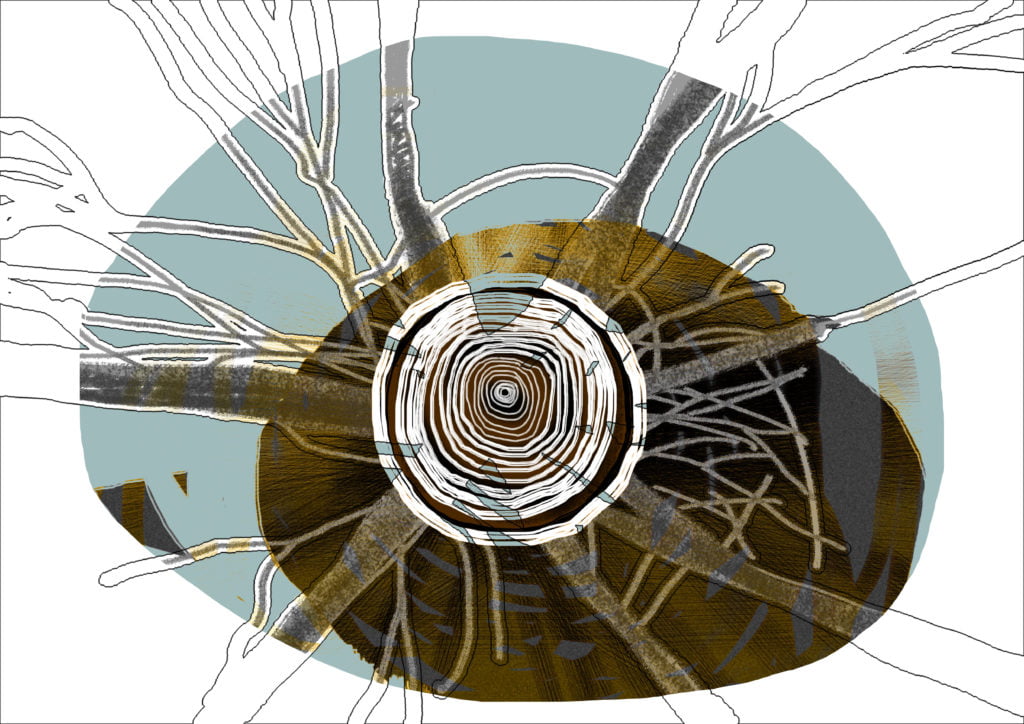 Tenslotte, nadat ik deze boom zag liggen, heb ik de jaarringen belangrijker gemaakt (zie laatste tekening).