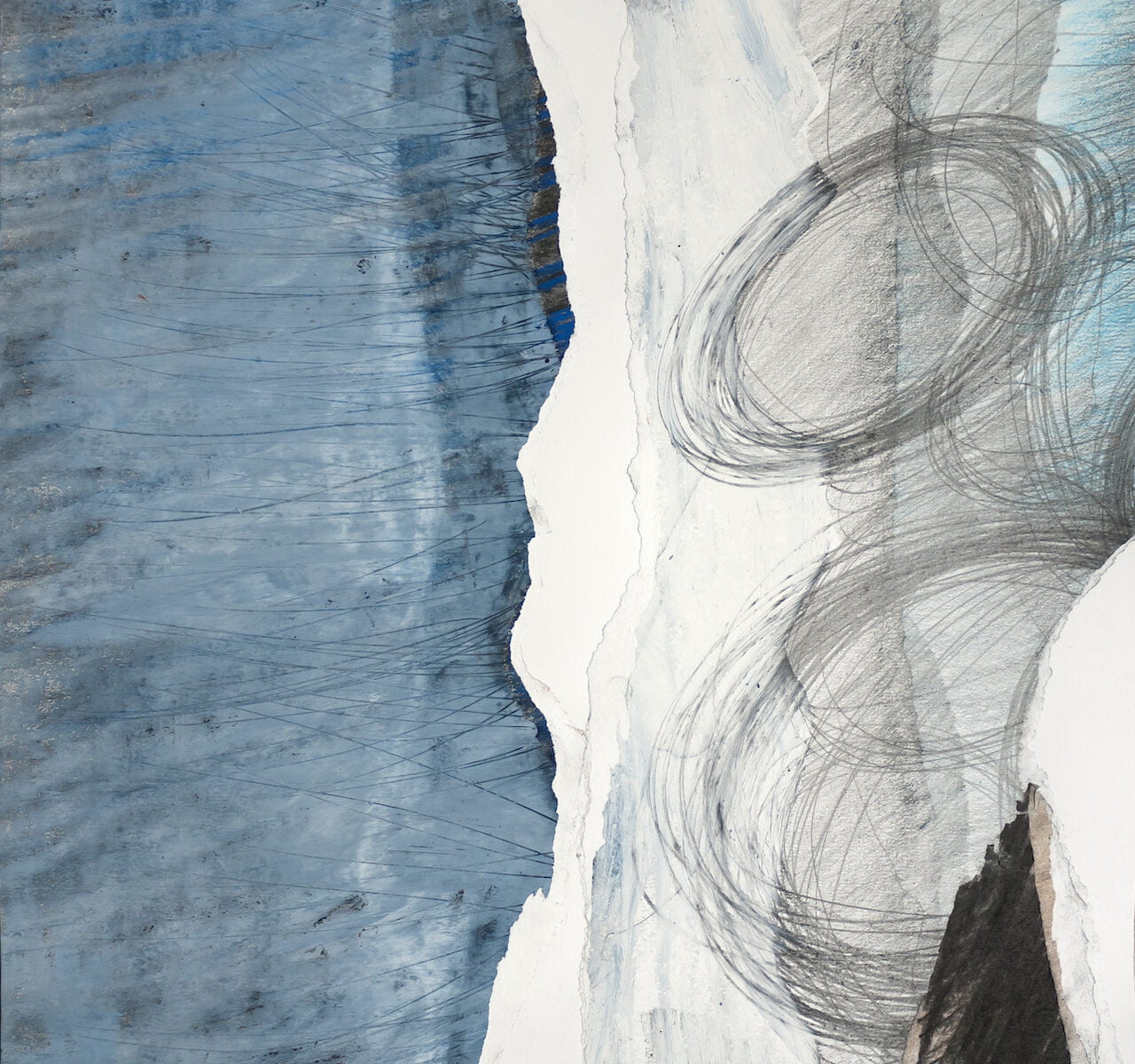 Anderhalf jaar geleden maakte ik de tekening ‘doorgetekende lijn’ en beschreef ik het proces. Dit experiment kwam niet uit de lucht vallen: ooit maakte ik al eens doorgebeten etsen, omdat ik de onvoorspelbaarheid van de chemische reactie spannend vond en ik de daardoor ontstane randen zo mooi vond. Hetzelfde geldt voor de scheurranden van papier. Maar dan zachter.