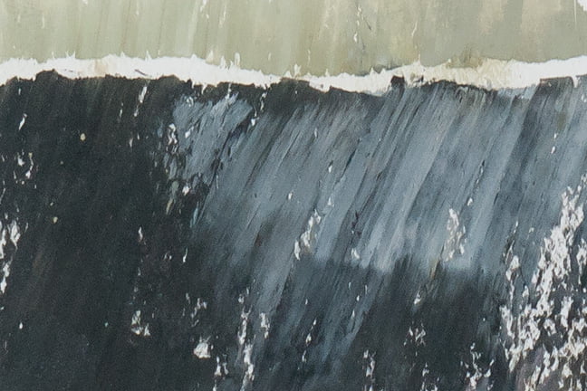 Anderhalf jaar geleden maakte ik de tekening ‘doorgetekende lijn’ en beschreef ik het proces. Dit experiment kwam niet uit de lucht vallen: ooit maakte ik al eens doorgebeten etsen, omdat ik de onvoorspelbaarheid van de chemische reactie spannend vond en ik de daardoor ontstane randen zo mooi vond. Hetzelfde geldt voor de scheurranden van papier. Maar dan zachter.