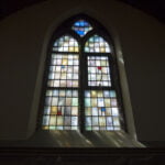 Boven mijn hoofd op het plafond verschijnt soms een bijzonder patroon van licht. Het is de weerkaatsing van zonlicht in een spiegel waarop stenen liggen. Dit beeld doet me denken aan het licht in de kerk vroeger, op mooie zondagen, als het feestelijk door de gebrandschilderde vensters viel.
