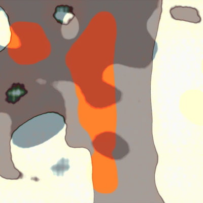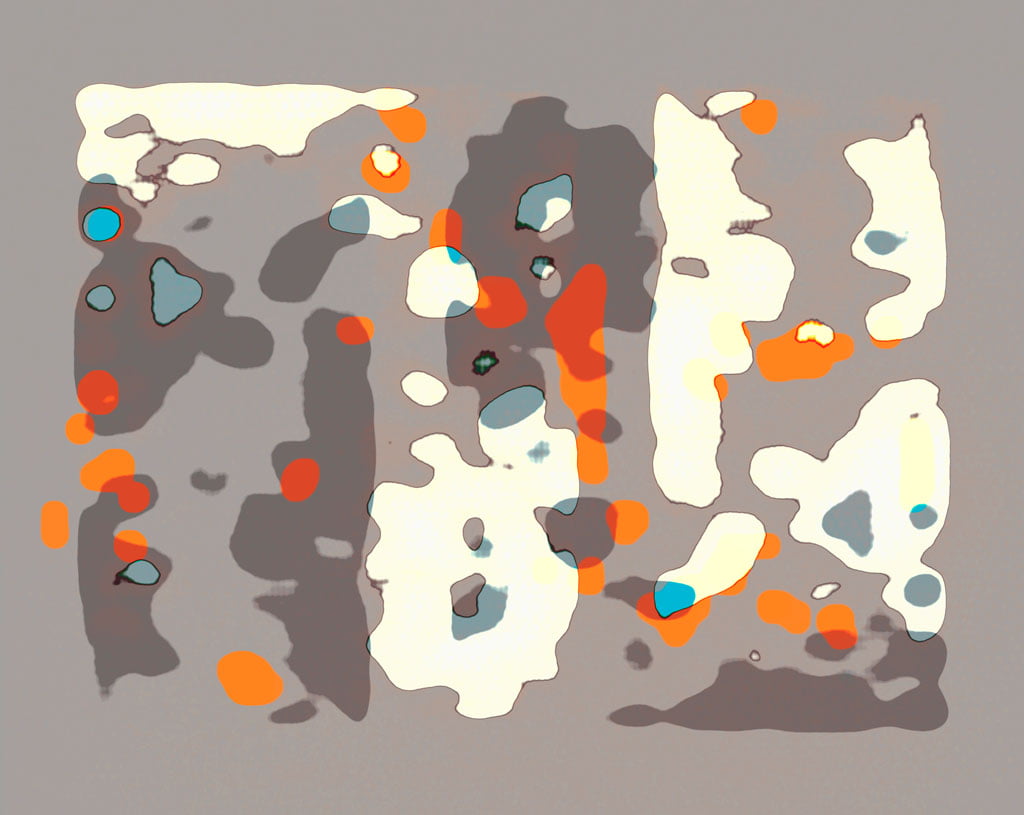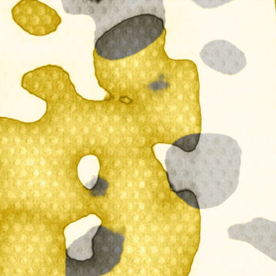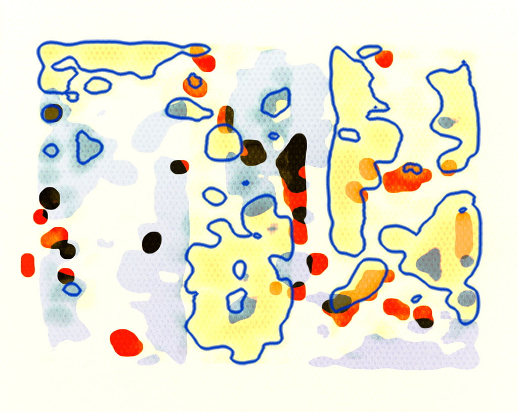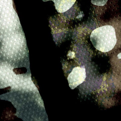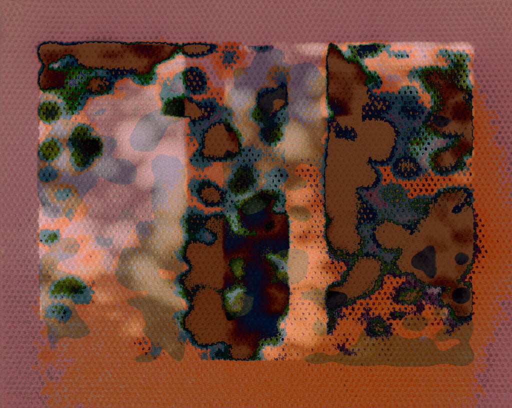 Zoals de ambachtelijke drukker drukgangen maakt, bouwde ik in de computer het beeld in lagen op, verschillend van kleur, structuur, dichtheid en transparantie. De resultaten die ik interessant vond sloeg ik op. Een selectie zie je bovenaan de pagina.