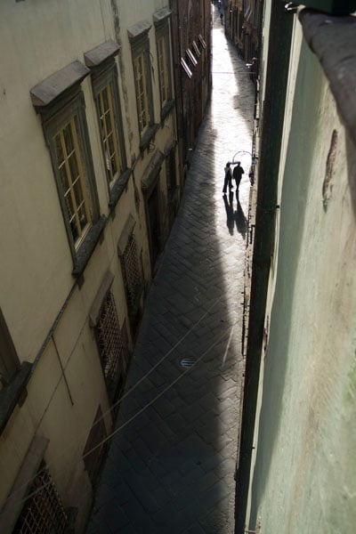 We verkennen Lucca door een omtrekkende beweging, letterlijk een wandeling om het Middeleeuwse centrum heen over de stadsmuren.