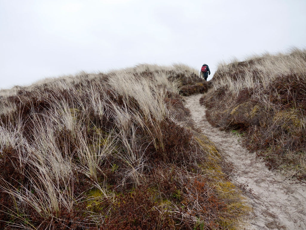 Maar het eiland wekt een verlangen op naar uitwaaien en zoute vlagen in je gezicht en licht en hoge luchten. Dus gingen we fietsen, tegen de wind in tegen de duinen op, langs het Groene Strand en het Donkere Bos. Daarna te voet langs Griltjesplak, over de zeereep het ruige strand op.