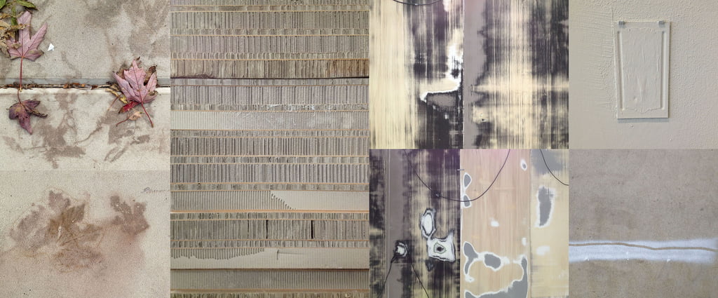 Op weg naar boven zag ik dat de witte panelen waaruit de stands waren opgebouwd aan de achterkant spannend gevlekt waren. Inspiratie zorgt voor ogen op steeltjes. Want ineens zie je meer: de afdrukken van bladeren op de stoep, een stapel karton in het gangpad, een dichtgelakt dekseltje in de muur.