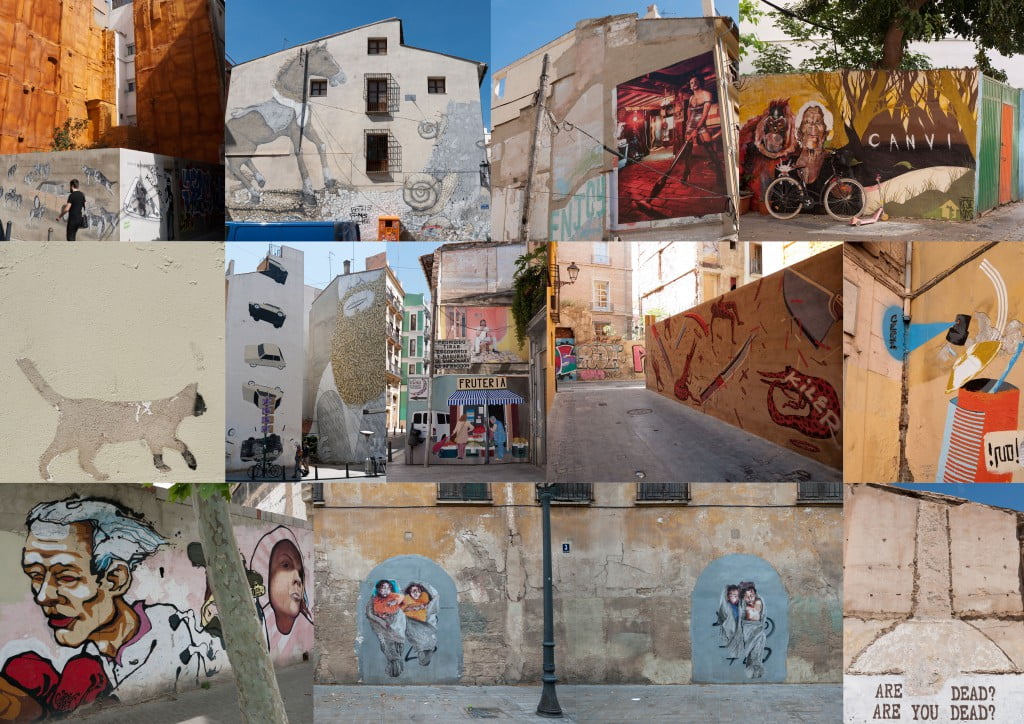 Je logeert aan de rand van het oude centrum van Valencia, tussen de Torres de Quart en het IVAM. Je gaat de buurt verkennen en zodra je de hoek om bent bevind je je in een prentenboek van beschilderde muren en blijf je lopen en lopen en kijken.