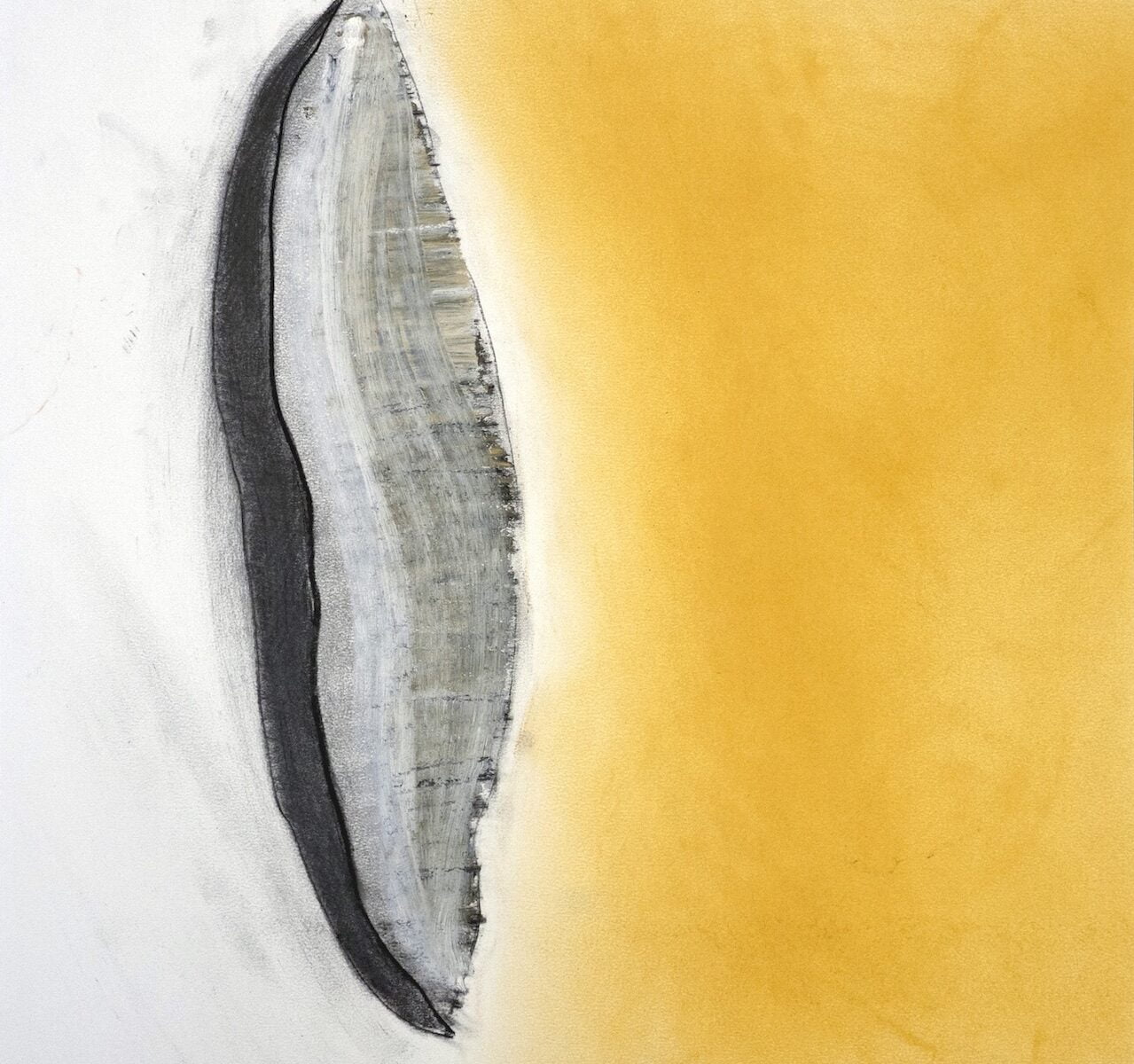 Ik werk op wit papier, met houtskool, grafiet, pigment, pastelkrijt en oliepastel. De houtskool heb ik zelf gemaakt, met takken van de hazelaar in de tuin. Vorig jaar gaf Lisanne Sloots een workshop in het Amstelpark. Dat was een middag vol vuur met houtskool als resultaat. Die hazelaar-houtskool is niet zo zwart, maar wel mooi zacht en fijn om mee te werken. De pigmenten zijn rode en gele oker, het blauw is pastelkrijt. Het materiaal gebruik ik op uiteenlopende manieren, ik houd van experimenteren en de tegenstelling tussen grof en fijn, hard en zacht.