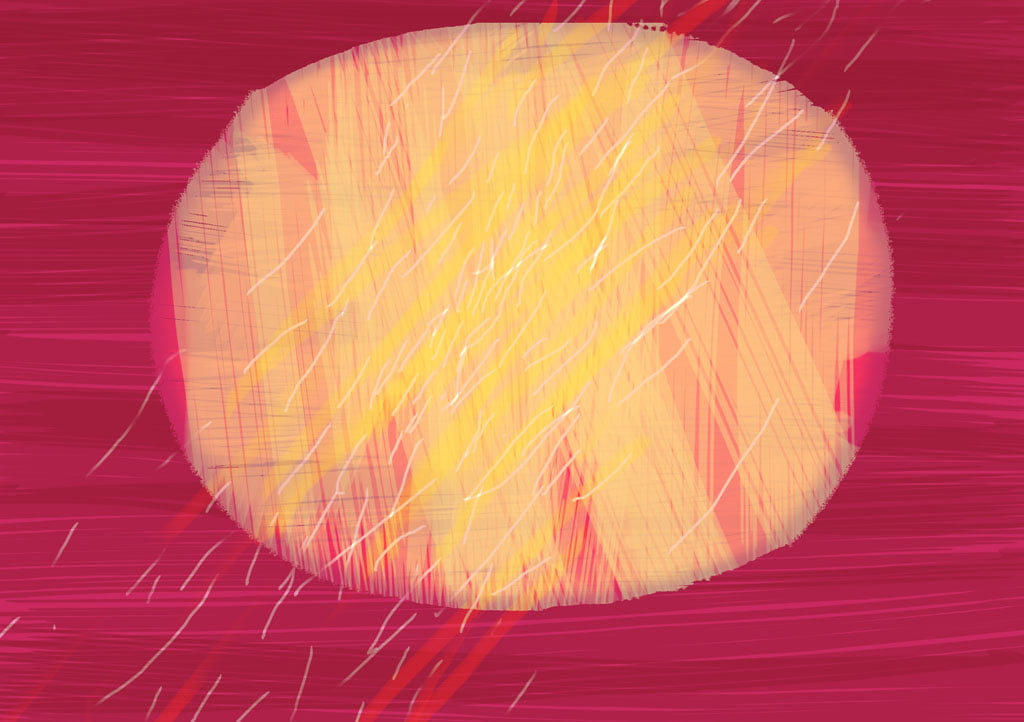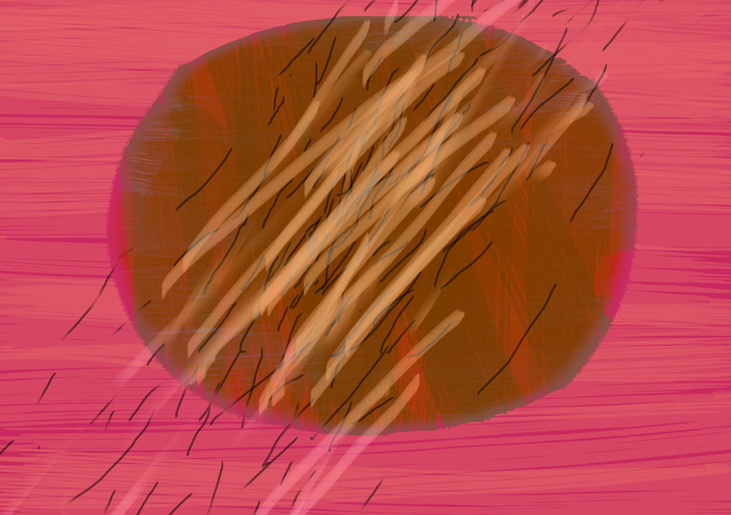 Als je in de zon kijkt en je richt je blik daarna ergens anders op, krijg je een nabeeld van het zonlicht op je netvlies, in de contrasterende kleur. Dit heb ik zonnevlekken genoemd. Drie van deze hingen op de tentoonstelling Frijheid Blidens in Kunstlokaal №8.